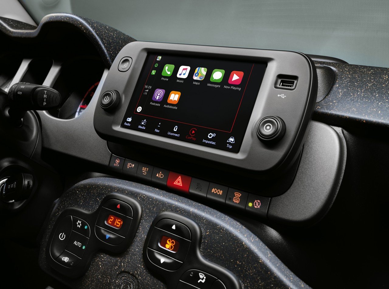 Dans l'habitacle, une vraie grande nouveauté pour la Panda : l'arrivée d'un écran tactile de 7 pouces, avec les compatibilités Apple Car Play et Android Auto.